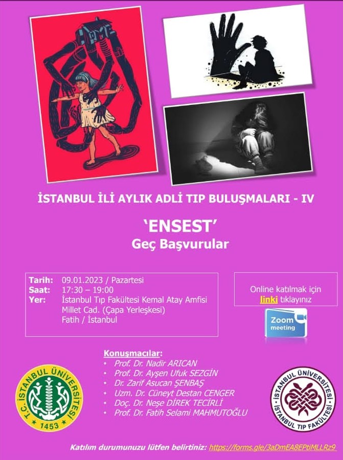 İstanbul İli Aylık Adli Tıp Buluşmaları IV etkinliğine katılmak için aşağıdaki link üzerinden kayıt yapılması gerekmektedir. Etkinlik kayıtlı katılımcılara açık olacaktır.
